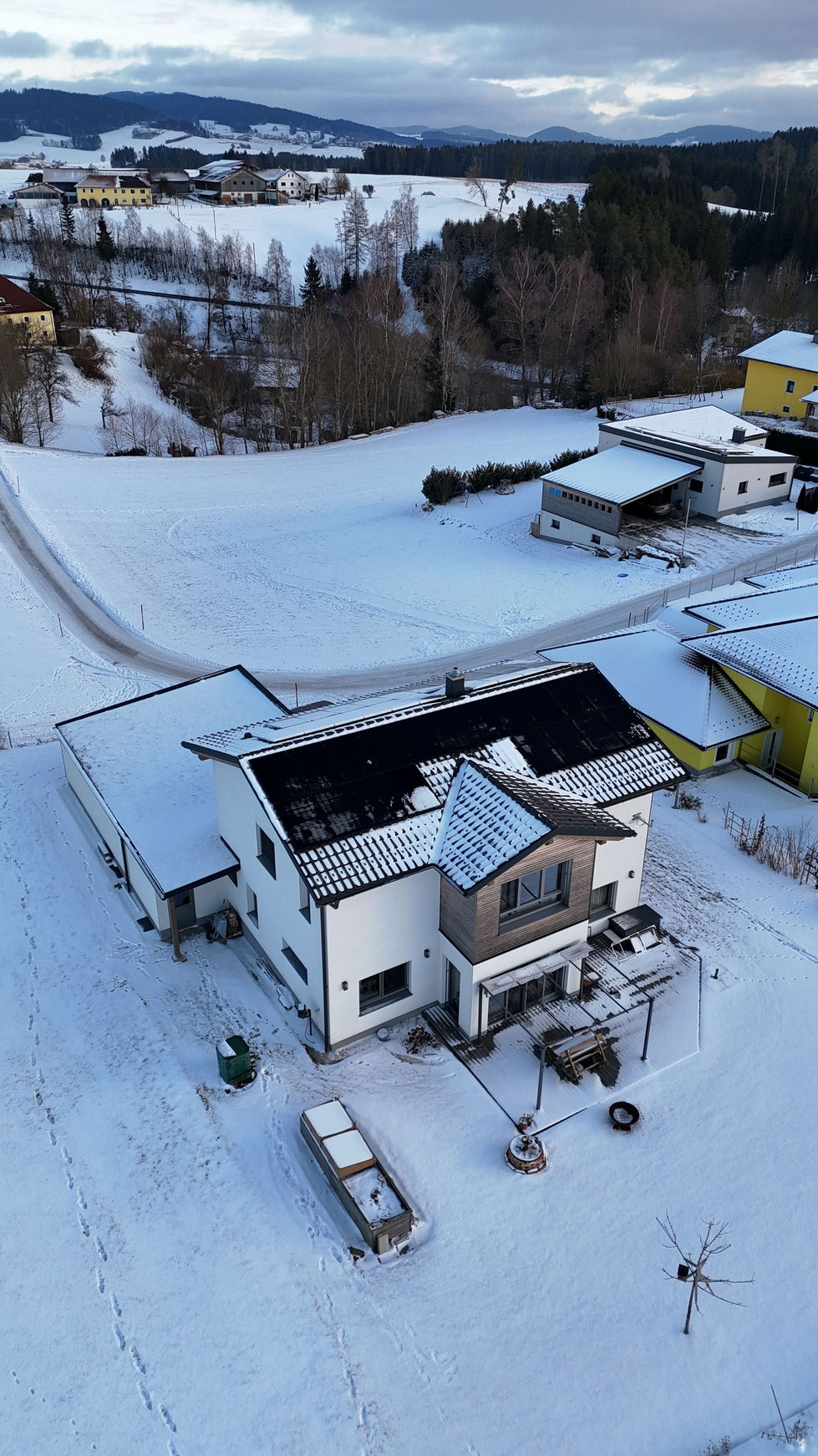 Der ergänzte Speicher erhöht den Eigenverbrauchsanteil deutlich und reduziert den Energiebezug spürbar. Dank der beidseitigen Modulmontage bleibt die Anlage auch bei Schneefall leistungsfähig.